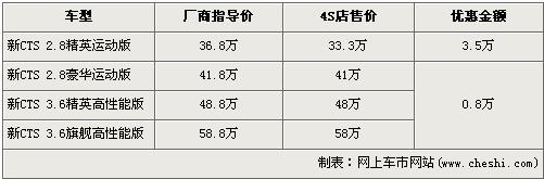 在美國(guó)素有“駕駛者之車(chē)”美譽(yù)的凱迪拉克CTS豪華運(yùn)動(dòng)轎車(chē),是一款將動(dòng)力性、操控性、舒適性完美結(jié)合的經(jīng)典產(chǎn)品,其的售價(jià)區(qū)間為36.8萬(wàn)元-58.8萬(wàn)元。近日據(jù)網(wǎng)上車(chē)市價(jià)格數(shù)據(jù)監(jiān)測(cè)顯示,凱迪拉克新CTS最高優(yōu)惠仍為3萬(wàn)元,具體詳情看下表: