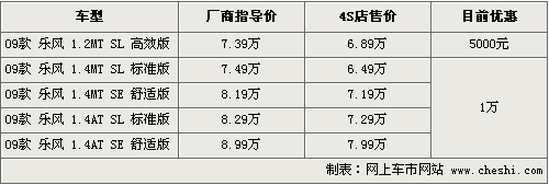 據(jù)4S店銷售人員介紹,目前銷售的樂風為09款車型,主要包括1.2和1.4兩個排量,1.6排量車型廠家尚未排產。目前購買樂風1.2排量可以優(yōu)惠5000元現(xiàn)金,最低僅售6.89萬元。1.4排量全系列優(yōu)惠現(xiàn)金1萬元,頂配自動檔車型優(yōu)惠后售價不足8萬元。在外觀顏色上,目前有藍色,銀色,紅色可供消費者選擇,內飾均為米色。