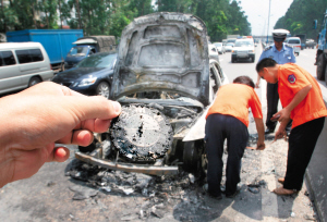 據(jù)現(xiàn)場(chǎng)有經(jīng)驗(yàn)的司機(jī)推測(cè),自燃原因估計(jì)是汽車在高溫情況下,電線短路或油箱漏油引發(fā)的,不過這一說法尚未得到證實(shí)。據(jù)悉,交警對(duì)此事已經(jīng)介入調(diào)查。(張配吉 陸璟)