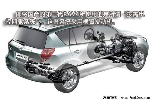 但值得注意的是,之前兩代RAV4采用的都是全時(shí)四驅(qū)系統(tǒng),與此相配合發(fā)動機(jī)也使用了縱置的設(shè)計(jì)。而即將國產(chǎn)的第三代RAV4所使用的是所謂“按需電控四驅(qū)系統(tǒng)”(Electronic On-DeMand 4-wheel drive)。這套系統(tǒng)采用橫置發(fā)動機(jī),在需要時(shí)通過液力粘性耦合器將動力傳至后輪。