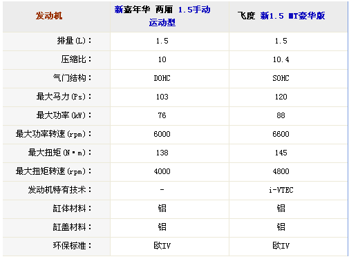 前面已經(jīng)說過,新嘉年華和飛度都是1.3和1.5兩個(gè)排量,如果只看發(fā)動(dòng)機(jī)參數(shù)的話,那飛度顯然要強(qiáng)出太多了。先來看1.3排量,飛度多出13馬力和4N·m。1.5升發(fā)動(dòng)機(jī)則差得更多,飛度比新嘉年華高出17馬力和7N·m。盡管參數(shù)上不具備優(yōu)勢(shì),但是新嘉年華針對(duì)城市游弋的特征要更加明顯,最大扭矩到來的比飛度要早很多,尤其是1.3升車型,兩者最大扭矩輸出轉(zhuǎn)速相差了1300轉(zhuǎn)之多。