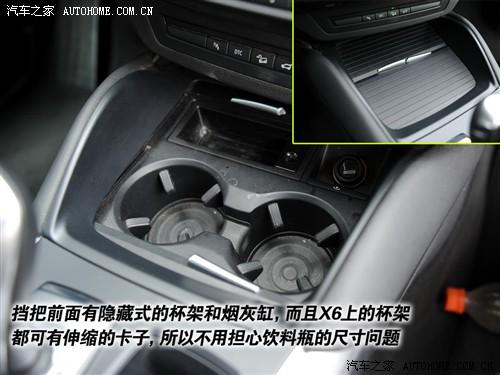 中控臺(tái)有兩個(gè)隱藏式的杯架和一個(gè)小的儲(chǔ)物槽,在這里要表?yè)P(yáng)一下X6的水杯架,不管是前排還是后排,每個(gè)杯架里面都有卡子,所以不用絲毫不用擔(dān)心飲料瓶的尺寸問(wèn)題,只要不是大可樂(lè)瓶就行。