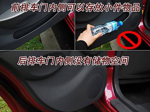 這款車的前排車門內(nèi)側(cè)帶有一個細(xì)長條狀的存儲空間,可以放報紙、雜志及其他小件物品,礦泉水瓶是無法放入其中的。而后排車門內(nèi)側(cè)則取消了這一設(shè)計,也許是考慮到后排有了儲物夾層的關(guān)系。