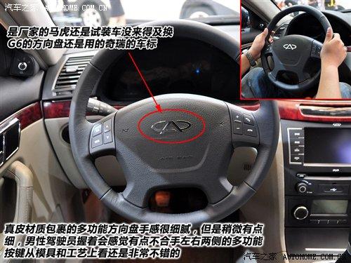 一坐進(jìn)G6車內(nèi),一眼就先看到了它的一個(gè)小BUG——作為奇瑞瑞麒品牌產(chǎn)品的G6,既然已經(jīng)有了自己新的車標(biāo),為什么方向盤上的LOGO還要用奇瑞的呢?是廠家的馬虎還是來不及換標(biāo)呢?希望廠家的朋友盡早對(duì)此作出調(diào)整,現(xiàn)在這樣給人感覺很不好,有拼湊之嫌。不過,這個(gè)用真皮材質(zhì)包裹的多功能方向盤的手感還真挺不錯(cuò)的,接觸面手感比較細(xì)膩,只是作為男性駕駛員,編輯認(rèn)為方向盤稍微有點(diǎn)細(xì),握著有點(diǎn)不太合手。左右條幅上的功能按鍵從模具工藝上看還是值得肯定的。