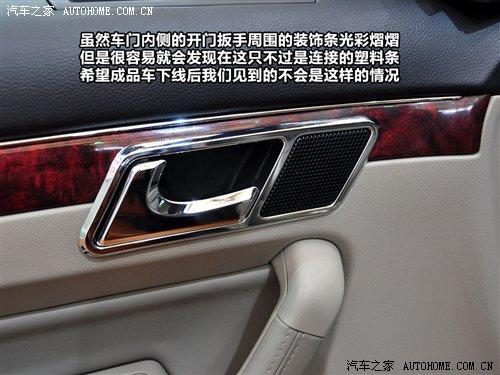 雖然車門內側的開門扳手周圍的裝飾條光彩熠熠,但是很容易就會發(fā)現在這只不過是連接的塑料條,希望成品車下線后我們見到的不會是這樣的情況。在車門上專門用于側窗玻璃除霜的出風口設計比較貼心,終于在我們自己的產品中看到了這種人性化度較高的設計。這個小出風口在車內外溫差較大時,玻璃上的霧氣對駕駛安全有很大影響,所以保持該區(qū)域內的清透非常有必要。