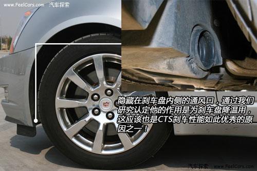 做完剎車測試,我們又對新CTS的輪胎,剎車盤片進行了仔細的觀察研究,發(fā)現在輪胎內側隱藏了一個出風口,正對著剎車盤。通過分析我們認定他的作用是對剎車盤降溫,這樣能夠讓剎車盤始終保持最佳狀態(tài)?磥硇翪TS能夠取得如此好的成績通用汽車在設計上確實下了一番苦心的!