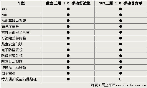 東風(fēng)雪鐵龍世嘉三廂和標(biāo)致307都屬于同一平臺的產(chǎn)物,所以在車身結(jié)構(gòu)上完全一樣。作為同一級別的兩款車型在安全配置方面基本相同。ABS、EBD、安全氣囊、安全車身都被列為了它們的標(biāo)準(zhǔn)配置。值得一提的是它們還裝備了沖撞自動解鎖系統(tǒng),大大確保了在發(fā)生事故時乘員的安全。但仔細(xì)看下來,世嘉三廂配備了碰撞緩沖保險杠,該項(xiàng)配置確保了在發(fā)生事故時對行人傷害的程度降到最低。
