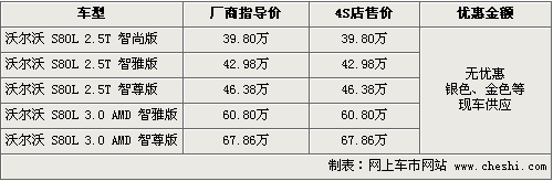 據(jù)4S店銷售人員介紹,目前國產(chǎn)沃爾沃S80有部分現(xiàn)車到店,有銀色、金色車身外觀可供消費者挑選。目前國產(chǎn)加長版尚未出現(xiàn)優(yōu)惠幅度。另據(jù)銷售人員介紹,現(xiàn)售的加長S80都是淺色內(nèi)飾,在8月份沃爾沃將推出黑色內(nèi)飾版,包含全系車型。黑內(nèi)飾版將為消費者提供更豐富的購車選擇。