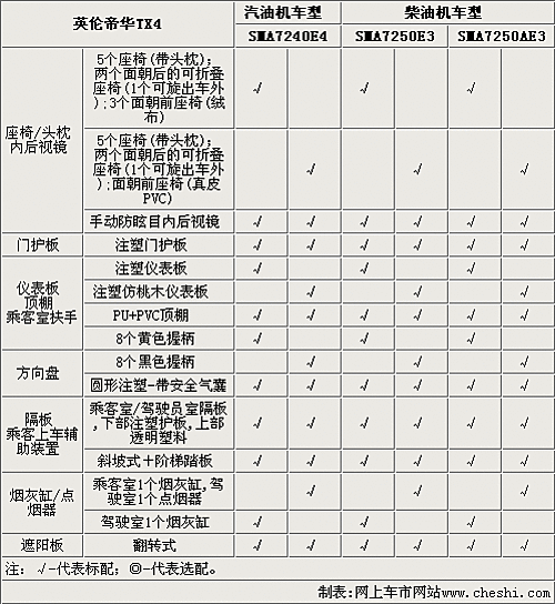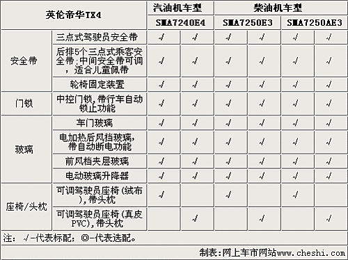 英倫TX4的后排帶有五個(gè)三點(diǎn)式安全帶,并且后排還帶有輪椅固定裝置。TX4配備了中控門鎖,帶行車自動鎖止功能,后風(fēng)擋玻璃也可以加熱,并且?guī)в凶詣訑嚯姽δ。TX4的高配車型都配備了真皮座椅,低配車型采用絨布材料座椅。