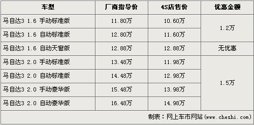 據(jù)長安馬自達(dá)4s店銷售人員介紹,除了4月份上市的1.6L馬自達(dá)3自動天窗版沒有優(yōu)惠外,其余車型均有優(yōu)惠,最高達(dá)到了1.5萬元。馬自達(dá)3的1.6L車型有1.2萬元的優(yōu)惠,經(jīng)優(yōu)惠后全系入門級的1.6L手動標(biāo)準(zhǔn)版售價(jià)從11.80萬元降到了10.60萬元。馬自達(dá)3得2.0L車型有1.5萬元的優(yōu)惠,經(jīng)優(yōu)惠后全系最高配的2.0L自動豪華版售價(jià)跌破了15萬元,僅售14.98萬元。銷售人員還介紹,除了1.6L馬自達(dá)3自動天窗版有現(xiàn)車外,其他車型都需預(yù)訂,訂金為1000元,最早約等一周后可提車。