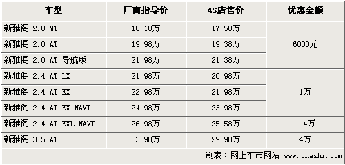 據(jù)4S店銷售人員介紹,目前購買新雅閣各款車優(yōu)惠金額有差別。2.0排量車型購車可優(yōu)惠現(xiàn)金6000元,優(yōu)惠完車價(jià)最低為17.58萬,但這款現(xiàn)車不多,2.0自動(dòng)檔兩款有黑色、銀色等供應(yīng)。除此之外,2.4排量三款車優(yōu)惠現(xiàn)金1萬元,高配則能給出1.4萬優(yōu)惠,3.5排量仍然現(xiàn)車緊張,需要預(yù)訂。訂車后仍能享受優(yōu)惠,最高優(yōu)惠4萬元。