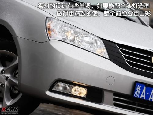 以黑色塑料為主的百葉窗風(fēng)格進(jìn)氣格柵很有特點(diǎn),個人感覺和以方塊為基調(diào)的盾形車標(biāo)搭配恰到好處。頭燈和尾燈都是眼下最流行的造型,雖然依稀還有些模仿的影子,但是整體效果不錯。如果把帝豪車標(biāo)擋住的話,真的很難想到這是一臺吉利車。美中不足的是霧燈的設(shè)計(jì)有些單調(diào),如果能配合頭燈造型做得更精致的話,整個前臉會更出彩。