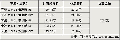 據(jù)4S店銷售人員介紹,目前奇駿2.5排量車型各款供貨都比較充足,2.0排量仍需要預(yù)訂。現(xiàn)車主要有黑色、銀色、灰色等。消費(fèi)者購(gòu)車的話可以優(yōu)惠現(xiàn)金7000元左右,其中2.0排量優(yōu)惠后售價(jià)僅為20萬(wàn)左右,性價(jià)比優(yōu)勢(shì)比較明顯。如果消費(fèi)者到店看車選購(gòu)還將有部分讓利幅度。