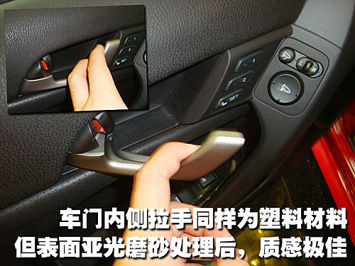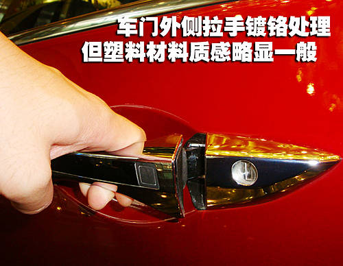 思鉑睿的車門拉手為鍍鉻裝飾。開啟方式為“拉動式”,其整體做工比較精細。反復開啟車門時車門把手沒有松動的跡象,并且開啟時手感比較厚重。