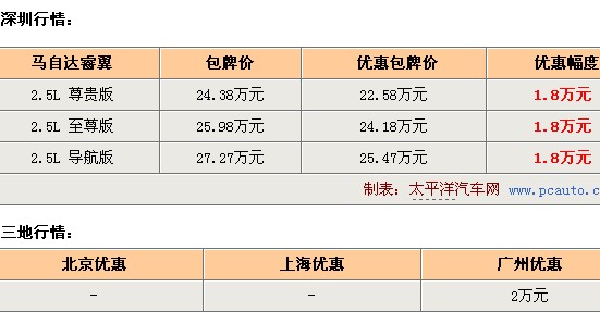 行情點(diǎn)評:馬自達(dá)6的成功令睿翼更具底氣,睿翼以21.68-24.98萬元的售價(jià)上市,對于馬6僅僅17萬出頭的售價(jià)來說,顯然這并不是一個(gè)合理的售價(jià)。然而這次的優(yōu)惠或許會令睿翼更加清楚自己的定位,對于22.58萬元包牌價(jià)的2.5L車型來說,相對合理,但消費(fèi)者會不會因此而買單,我們拭目以待。