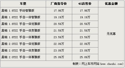 據(jù)4S店銷售人員介紹:目前明銳全系最高優(yōu)惠9000元,1.6升及1.8TSI車型優(yōu)惠減少,尤其1.8TSI車型由原來的8500元降至5000元。2.0升目前優(yōu)惠9000元,優(yōu)惠幅度很大,并且2.0升車型有現(xiàn)車,顏色包括銀色、灰色車型。1.6升車型全系現(xiàn)車少,如需預(yù)定最短等待1個(gè)月,最長(zhǎng)需等3個(gè)月時(shí)間。目前1.6升車型優(yōu)惠達(dá)5000元,1.8TSI的兩款車型優(yōu)惠5000元。如在店內(nèi)做裝飾還可打8折,雖然折后裝飾價(jià)格仍有些偏高,但產(chǎn)品質(zhì)量可以保證。