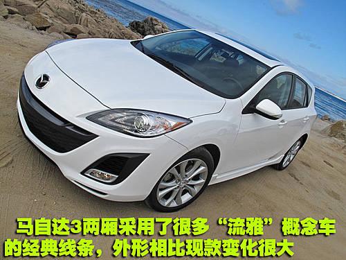 全新的馬自達(dá)3兩廂版雖然在外觀方面與老款相比也有了很大的提升,但作為馬自達(dá)家族的運(yùn)動代表,這款車依然秉承了馬自達(dá)3兩廂一貫的運(yùn)動設(shè)計(jì)風(fēng)格,并且保留了老款車型流暢的線條與鮮明車頂線條以及那條強(qiáng)勁有力的腰線。外觀方面,這款車采用了水平式前氙氣頭燈組合,保證了消費(fèi)者在夜間行駛的安全性。另外,分體式尾燈、后擾流板和新式鋁合金輪的配備,是這款車的運(yùn)動氣息更加濃郁。