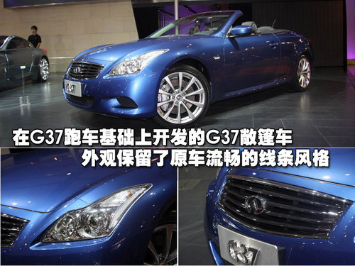 本次廣州車展上英菲尼迪攜旗下的跑車型SUV FX50、FX35,豪華運(yùn)動(dòng)型G37雙門跑車和G37轎車,高端豪華轎車M35及轎跑型豪華Crossover EX35等多款明星車型驚艷亮相。同時(shí),英菲尼迪正式發(fā)布了其全新車型G37硬頂敞篷跑車。