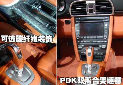 2010款保時捷911 Turbo敞篷版三輻方向盤兩側則依照人體工學設計,分別加入音響通訊的控制鍵與滾輪,外側則是鋁合金的PDK換檔滑動開關,這項全新的方向盤換檔設計,在人體工學的表現(xiàn)相當優(yōu)異,利用食指或中指就能完成升檔與降檔的檔位變換動作。