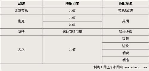 合資品牌方面北京奔馳未來將引進(jìn)奔馳的1.6升渦輪增壓引擎,將其裝配在奔馳新C級(jí)轎車中。而上海通用別克在09年廣州車展展出的英朗轎車也將在未來推出1.6T和2.0T兩款車型。09年長(zhǎng)安福特正式推出了ECOBOOST引擎計(jì)劃,該計(jì)劃是指在未來推出燃油直噴和渦輪增壓引擎,但具體車型目前長(zhǎng)安福特并未公布。大眾方面已經(jīng)成熟的1.4TSI引擎將列裝到邁騰、途歡、明銳、朗逸等車型中。