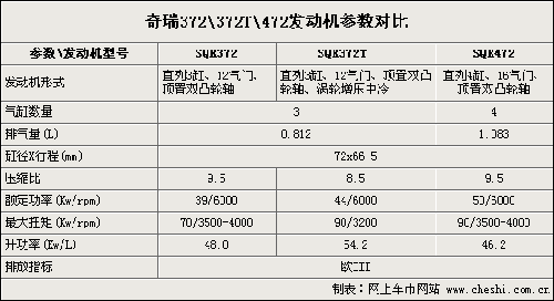 通過上表可以看出,奇瑞372T系列發(fā)動(dòng)機(jī)基本上是以原有的0.8升發(fā)動(dòng)機(jī)為基礎(chǔ)研發(fā)的。但由于使用了渦輪增壓技術(shù),提高了發(fā)動(dòng)機(jī)進(jìn)氣量進(jìn)而也提升了發(fā)動(dòng)機(jī)的功率和扭矩,所以我們看到這款0.8升排量的三缸發(fā)動(dòng)機(jī)在最大功率方面,相較老款發(fā)動(dòng)機(jī)有了5千瓦的提升;而最大扭矩已經(jīng)達(dá)到了1.1升發(fā)動(dòng)機(jī)的90牛米,并且相比4缸1.1升發(fā)動(dòng)機(jī)最大扭矩輸出時(shí)間來得更早。僅從技術(shù)指標(biāo)上來說,奇瑞的這款0.8T發(fā)動(dòng)機(jī)還是非常具有實(shí)力的。