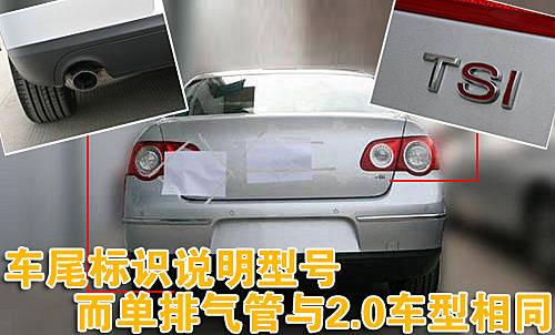 車尾“TSI”的標(biāo)識(shí)表明了邁騰1.4TSI的車型身份,由于邁騰是“B”級(jí)車,所以尾部并沒有出現(xiàn)速騰1.4TSI尾部“1.4”的數(shù)字標(biāo)識(shí)。此外,其車尾左下方的排氣管并沒有采用邁騰1.8TSI的雙排氣管設(shè)計(jì),而是采用與邁騰2.0車型相同的單排氣管設(shè)計(jì)。