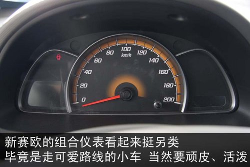 新賽歐的組合儀表看起來挺另類,畢竟是一款走可愛路線的小車,當(dāng)然要表現(xiàn)出頑皮、活潑的一面。