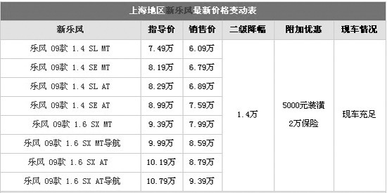 新樂風目前共有1.2/1.4/1.6三種排量9款車型在售,一般銷售的都為1.4L和1.6L車型,其中熱賣的新樂風1.6L SX車型標配ABS/EBD和前排雙安全氣囊等安全配置,同時配備真皮座椅和真皮方向盤等。