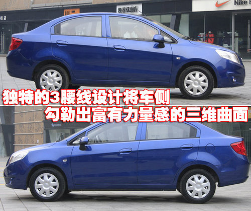 雪佛蘭-新賽歐車身側(cè)面的三條腰線,勾勒出富有立體感和力量感的三維曲面。而其前長后短的車頭車尾比例、前短后長的懸掛分配、上薄下厚的體積組合和前低后高的車身姿態(tài),也進一步突出了新賽歐的外觀視覺效果。
