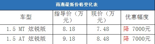 近日,編輯從北京地區(qū)綜合經(jīng)銷商處了解到,近期雨燕的現(xiàn)車比較充足,顏色也比較齊全,基本可以滿足消費(fèi)者的需要;目前購(gòu)車全系有7000元的現(xiàn)金優(yōu)惠。據(jù)經(jīng)銷商透露,消費(fèi)者要想以這個(gè)價(jià)格提車,需要在店內(nèi)做一條龍服務(wù),其中車輛四項(xiàng)基本保險(xiǎn)可以打9折(約合3400-3600元左右)。以下是雨燕最新價(jià)格變化表:
