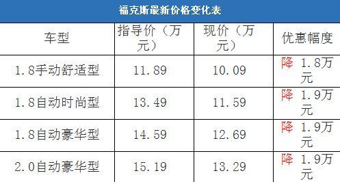 近日,編輯從北京地區(qū)長安福特4S經(jīng)銷商處了解到,?怂沟默F(xiàn)車充足,顏色也比較全,但是目前購車沒有任何優(yōu)惠,只能消費(fèi)者到店與銷售人員詳談才可以爭取少量優(yōu)惠。相比之下,?怂乖诰C合經(jīng)銷商處的優(yōu)惠最高達(dá)到了1.9萬元,性價(jià)比非常不錯(cuò)。以下是?怂谷龓钚聝r(jià)格變化表: