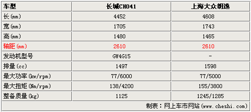 長城CH041車長4452mm、寬1705mm、高1480mm,在尺寸上雖然要比朗逸小一些,但作為車輛最重要的軸距上,兩車同為2610mm,這也意味著CH041與朗逸不僅僅是外形相似那么簡單。在動力上,CH041將搭載長城自主研發(fā)的1.5L CVVT發(fā)動機(jī),具有可變節(jié)氣門技術(shù),在保證強(qiáng)勁動力輸出的同時(shí),又可以達(dá)到了良好的節(jié)油性能。
