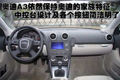 奧迪A3依然保持奧迪的家族特征,中控臺(tái)設(shè)計(jì)及各個(gè)按鈕簡(jiǎn)潔明了。其三輻式真皮方向盤配備集成控制按鈕,而白色冷光儀表盤突出視覺效果的同時(shí),又方便駕駛員讀取信息。