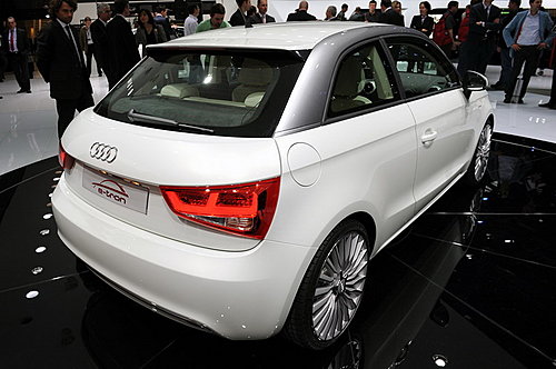 嚴(yán)格意義上說(shuō)這臺(tái)奧迪A1應(yīng)該算是一臺(tái)電動(dòng)車,因?yàn)樗陌l(fā)動(dòng)機(jī)部分不與車輪連接車輛的行駛僅依靠電動(dòng)機(jī)。在外觀方面,與普通版A1車型相比,奧迪A1 E-tron概念車除了在前臉格柵、尾部擴(kuò)散器上略作修飾,去除排氣管外,其余部分均與前者相似。
