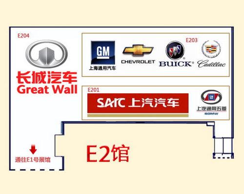 在本屆北京車展,E2館將有上海通用汽車集團(別克、雪佛蘭、凱迪拉克)上海汽車集團(含上汽通用五菱)、長城汽車等6個品牌參展。主要亮點車型包括別克英朗GT、雪佛蘭新賽歐兩廂、雪佛蘭全新spark、上汽榮威350以及長城中級車CH041。