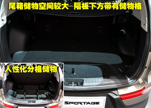 對于起亞SLC而言,儲物是它的最大強項,當(dāng)后排座椅完全放倒下,備箱儲物空間進(jìn)一步加強。另外備箱的開口也很大,便于取放較大的物品。備箱隔板下另設(shè)有暗藏的儲物格,并且?guī)в蟹指粼O(shè)計,存放小物品時也更加方便,人性化設(shè)計值得稱贊。
