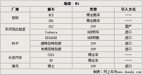 在W3館中,共有7家汽車廠商在此參展,除雪鐵龍/東風(fēng)雪鐵龍和開瑞外,其余廠商如標(biāo)致將帶來兩款概念車RCZ和SR1;東風(fēng)悅達(dá)起亞將帶來即將國產(chǎn)的SUV車型——SLC(海外版新獅跑)和以進(jìn)口方式引入的新中級車——Cadenza,鈴木將在本屆車展中帶來三款車型,其中新款轎跑車KAZASHI是最大的亮點(diǎn)。自主品牌也不甘寂寞,長安汽車和海馬汽車分別帶來了C201概念車和SUV車型——騎士。