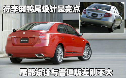 鈴木將在日本相良地區(qū)的全新工廠,進(jìn)行Kizashi車系的生產(chǎn)作業(yè)。延續(xù)Concept Kizashi概念車系的造型美學(xué),量產(chǎn)版Kizashi擁有強(qiáng)健的外觀線條,U字型的水箱總成為其塑造鮮明的辨識(shí)特征,與概念車款相比,Kizashi 的頭燈則更加飽滿有神。而對于這款運(yùn)動(dòng)版車型來說,它的外形更加動(dòng)感了。