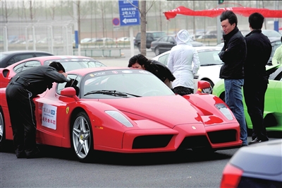 昨天是北京國(guó)際車展專業(yè)觀眾日的第一天。展館外的花博會(huì)停車場(chǎng)上,停了約50輛超級(jí)跑車,寶馬、法拉利、保時(shí)捷、奧迪、奔馳等豪華車品牌悉數(shù)到場(chǎng),無意中成了一個(gè)小型“豪華車展”,零距離接觸跑車的快感,吸引了不少路人和看展人的視線。