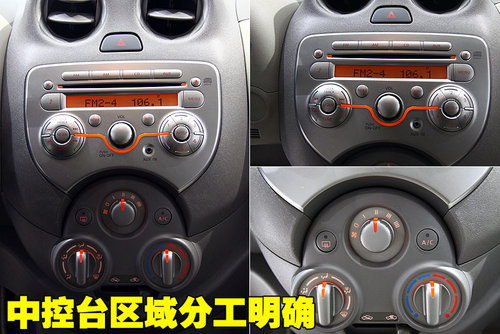 空調(diào)面板部分,東風(fēng)日產(chǎn)瑪馳的控制區(qū)域分工明確,操作比較簡(jiǎn)單,非常容易上手。控制區(qū)域分工明確,操作比較簡(jiǎn)單,而且時(shí)尚氣息很濃。