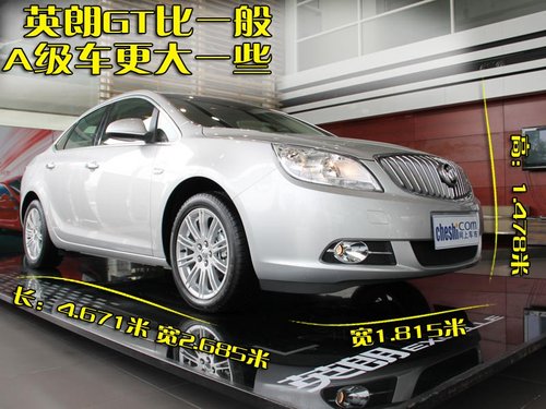 英朗GT的外形尺寸在如今大多數A級轎車中算是比較大的一個了,他擁有4.671米的車長同時擁有2.685米的軸距。而我們常見的A級緊湊型車例如大眾速騰為2.578米、標致307為2.61米,由此可見這臺別克英朗GT也是一款“超尺寸”的A級轎車。