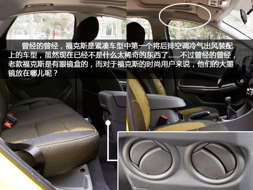 ?怂故菄鴥(nèi)第一款在后排加裝空調(diào)出風(fēng)口的緊湊型轎車,雖然在現(xiàn)在已經(jīng)不是什么大不了的設(shè)置,但是貼心的設(shè)計還是不錯的。不過沒有眼鏡盒是讓編輯我這個四眼感覺很不爽的,畢竟老款福克斯是帶有眼鏡盒的。