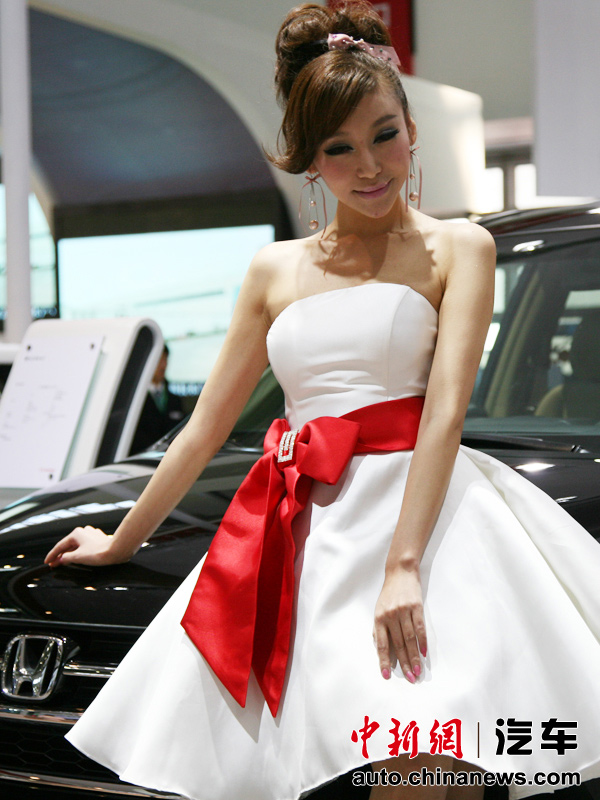 北京車(chē)展群芳競(jìng)艷:靚模一襲白裙秀香肩