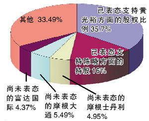 從公開表態(tài)的情況來(lái)看,黃光裕陣營(yíng)除了自己的32.47%股權(quán)外,還有黃光裕好友鄭建明2%、表明“挺黃”的內(nèi)地股民歐陽(yáng)雪初方面0.6%的股權(quán)支持,合計(jì)持股大概是35.7%。