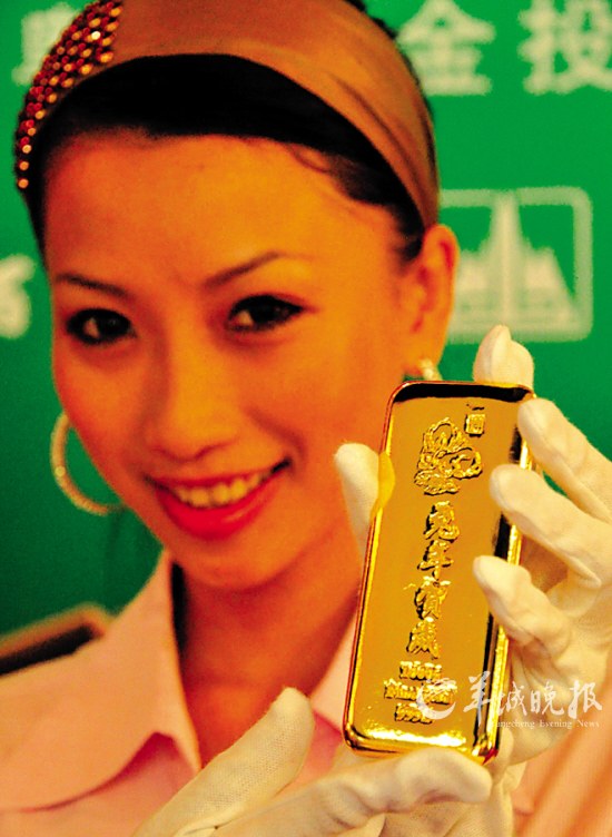 適逢黃金大漲,賀歲金條也趁機(jī)推出。昨日,中國金幣總公司限量發(fā)行2011(辛卯)兔年賀歲金條在東百和廣百等百貨公司發(fā)行。據(jù)了解,本次發(fā)行的兔年賀歲金條有1000克、500克、200克、100克、50克共5個規(guī)格,發(fā)行總重量為3980公斤。廣州市場的份額為100公斤,其中東百25公斤,廣州永正紀(jì)念幣有限公司聯(lián)合金鉆隨緣30公斤。
