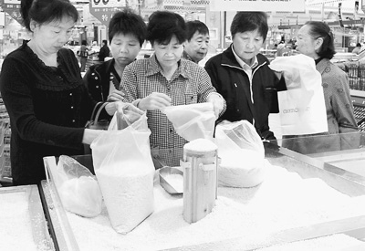 25日是廈門市定向供應(yīng)“優(yōu)惠大米”的第三天,記者看到在大潤發(fā)超市糧油優(yōu)惠專柜前擠滿了前來買大米的市民。家住蓮坂小區(qū)的馬阿姨一次就買了3大袋優(yōu)惠米。她說,家里5口人吃飯,全靠她2000多元的退休金生活,還得照顧兩個(gè)身體不好的兄弟,平時(shí)的開銷都得精打細(xì)算,原來買的都是1.8元左右的米,現(xiàn)在市場都見不到了,所有大米基本上都漲到2元多。聽說政府為保障低收入群體生活,特供這種“優(yōu)惠大米”,她早早趕來購買。