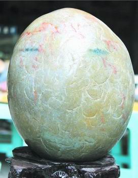 經(jīng)專家鑒定,這塊石頭是罕見的玉化了的“五彩云紋石”,非常難得,通常只有四川岷江才有,價值在5萬至8萬元之間。(侯莉 成都商報記者 何東 攝影報道)