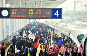 千里之外,與G1002次同時首發(fā)的G1001次也從寒風(fēng)凜冽的武漢開出,到達廣州時乘客“一下車就感覺到暖意”……活躍在湖北、湖南、廣東三省的上億人,伴隨著“高鐵”的滾滾車輪,進入“早餐熱干面,午餐白切雞”的“同城化”時代。