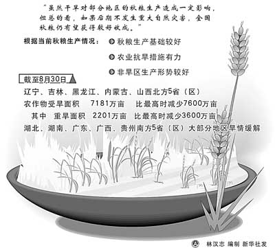 陳萌山表示,隨著近期旱區(qū)大范圍降雨和抗旱措施進(jìn)一步落實(shí)到位,南方和北方旱情均明顯緩解?偟膩(lái)看,如果后期不發(fā)生重大自然災(zāi)害,全國(guó)秋糧仍有望獲得較好收成。作出該判斷基于幾個(gè)方面: