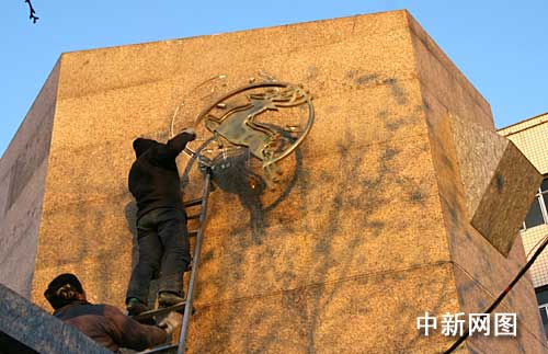 下午四時三十分許,記者在石家莊市和平西路三鹿集團總部看到,兩名工人開始拆除門口警衛(wèi)室旁東西方兩側的“三鹿”標志?偛块T口“石家莊三鹿集團股份有限公司”的字樣已經(jīng)被拆除,只留下模糊的痕跡依稀可辨。
